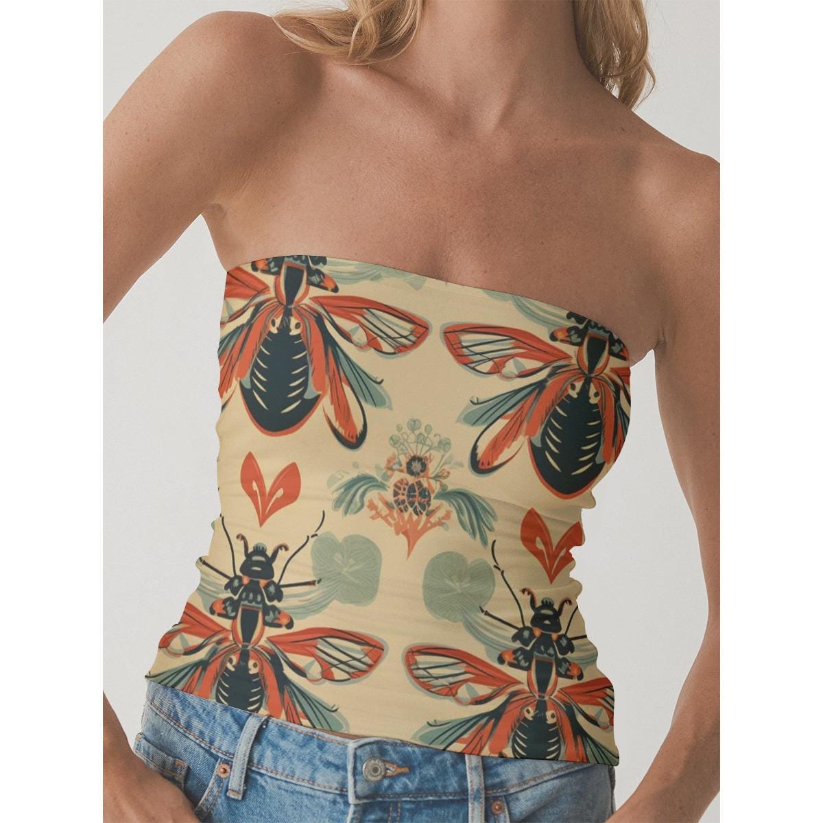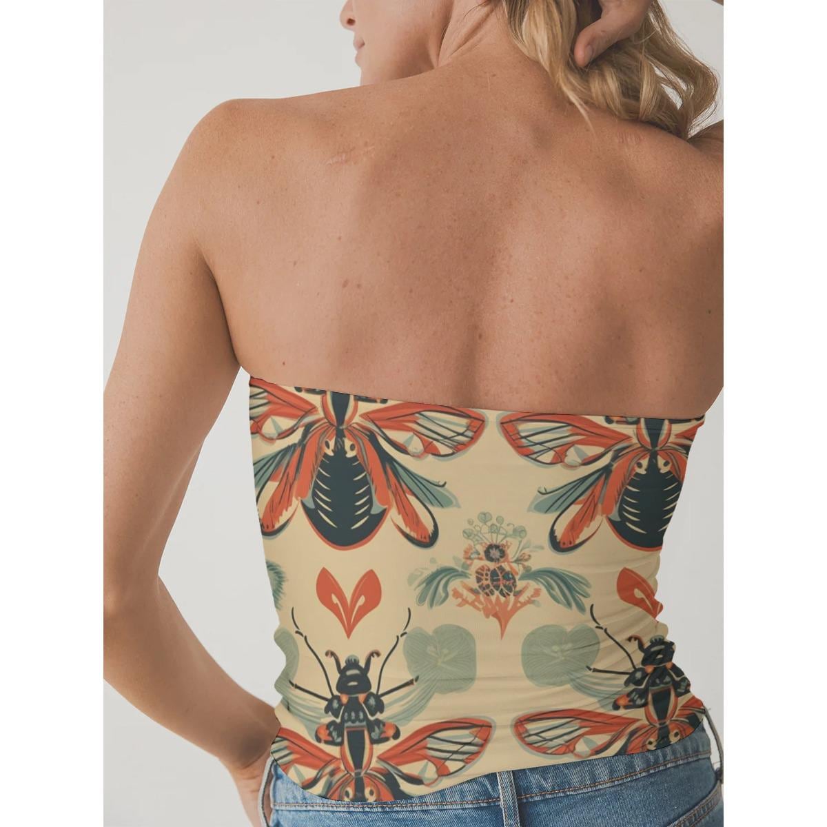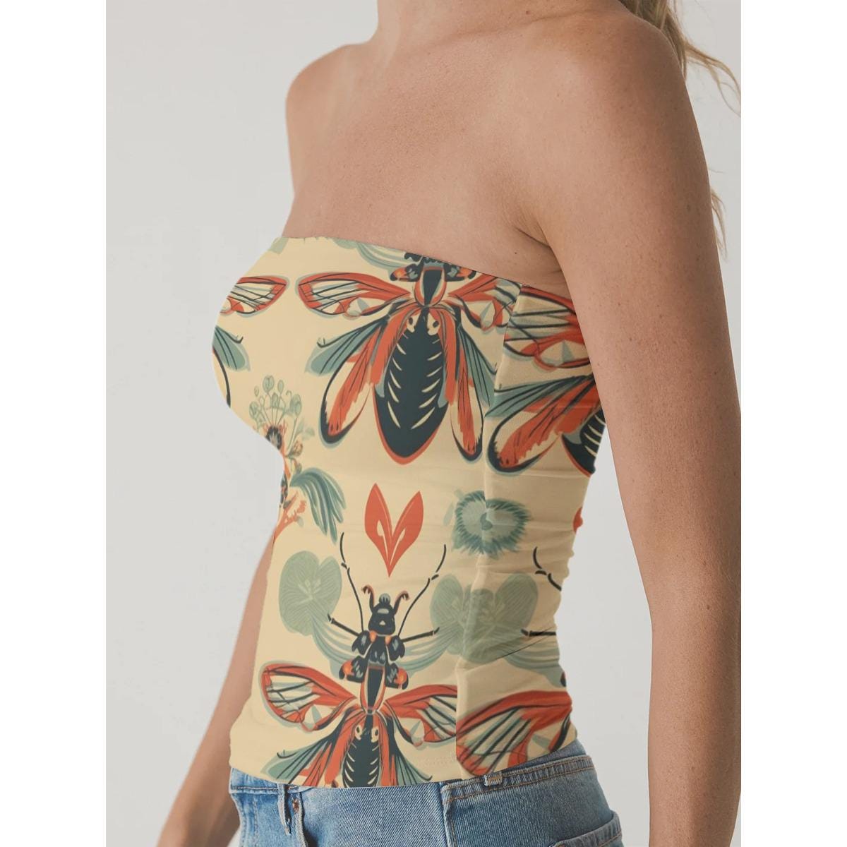 Grunge Moth Tube Top: Soft Goth Butterfly Print Strapless Shirt