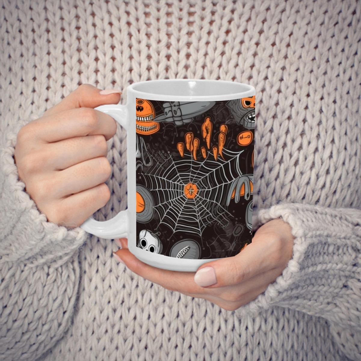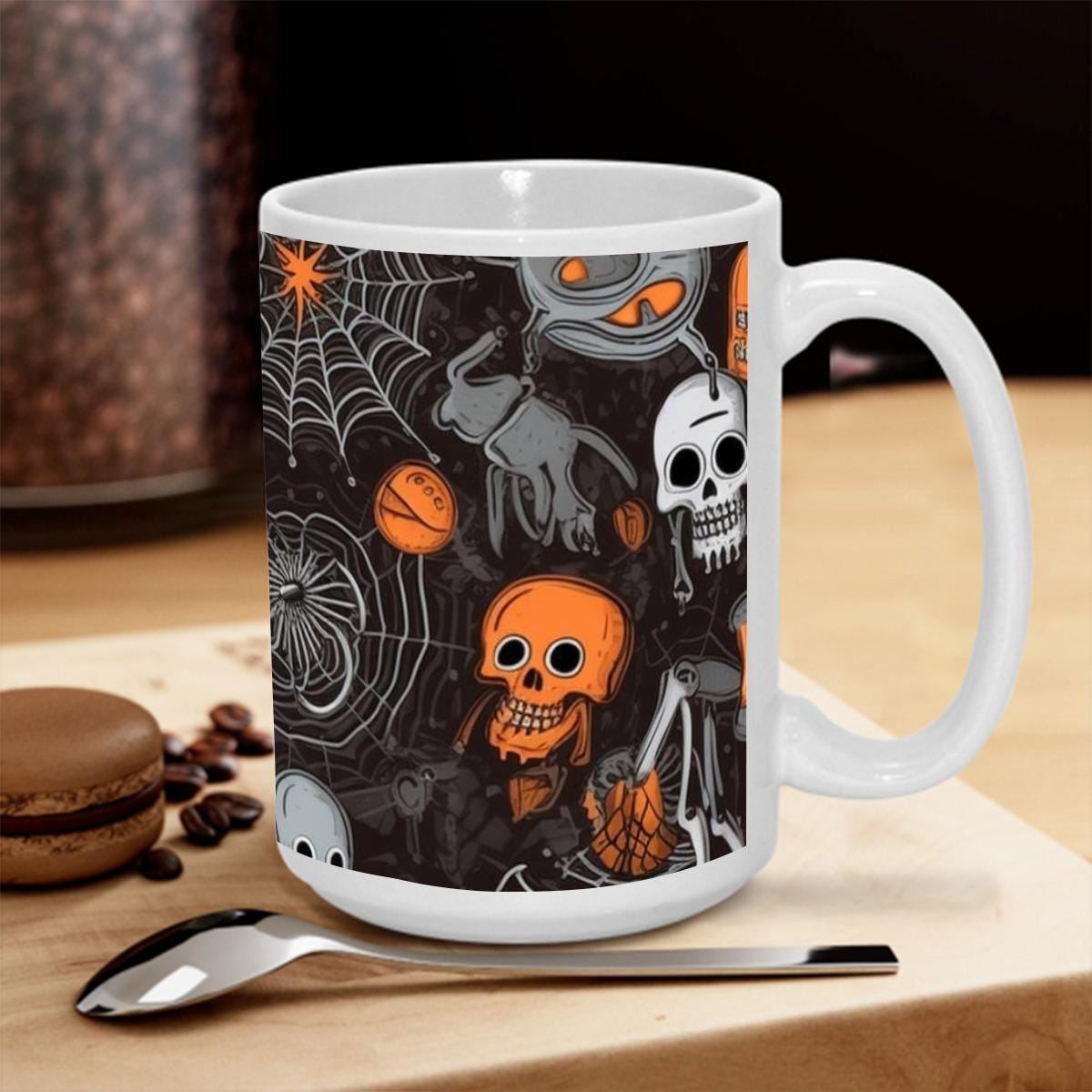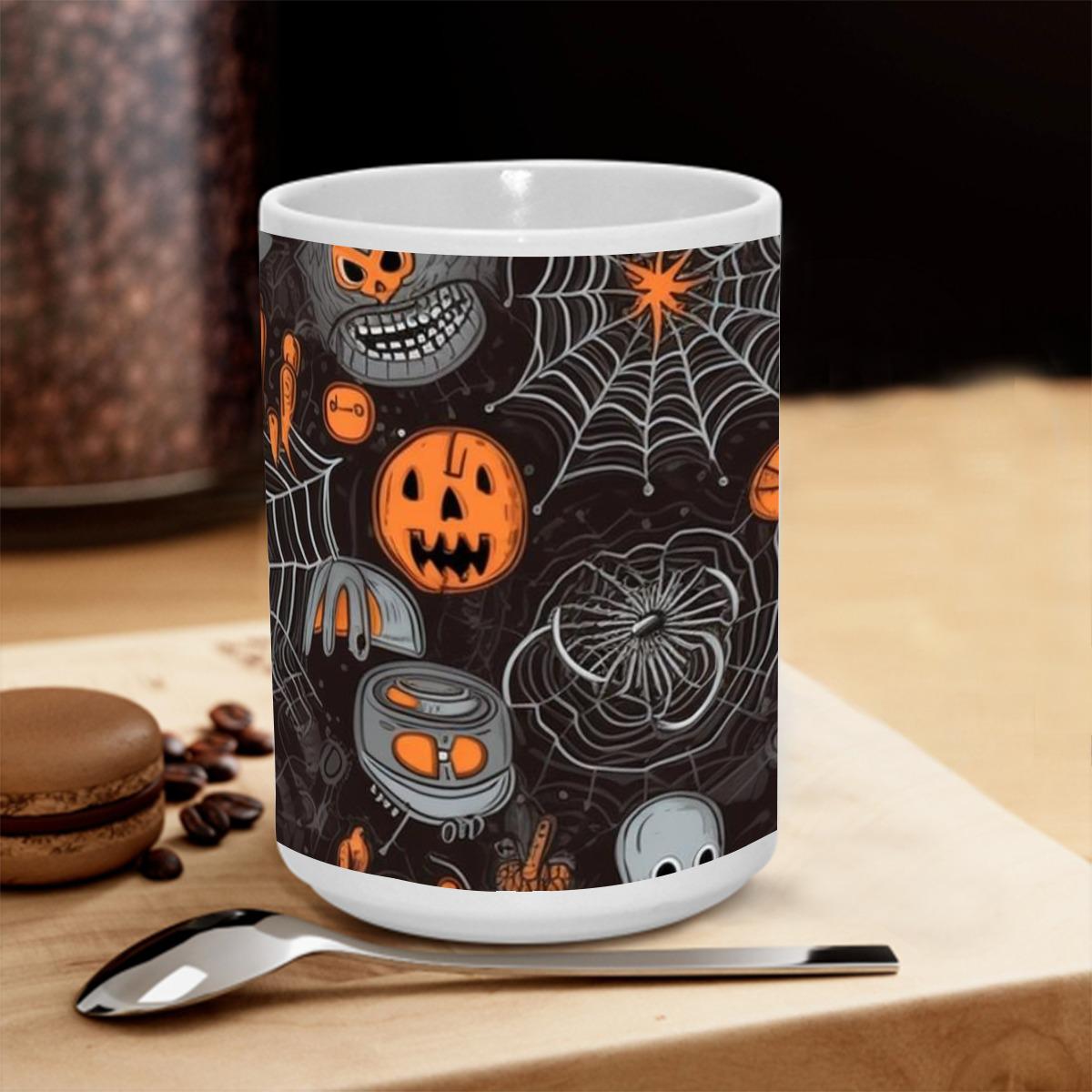 Ghost Pumpkin Halloween Mug 15oz Funny Fall Coffee Cup for Single Life and Spooky Season