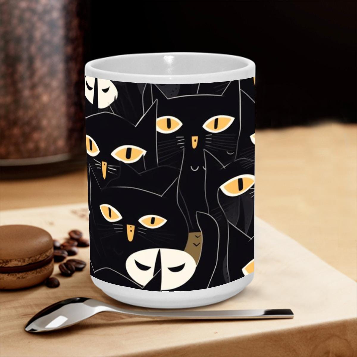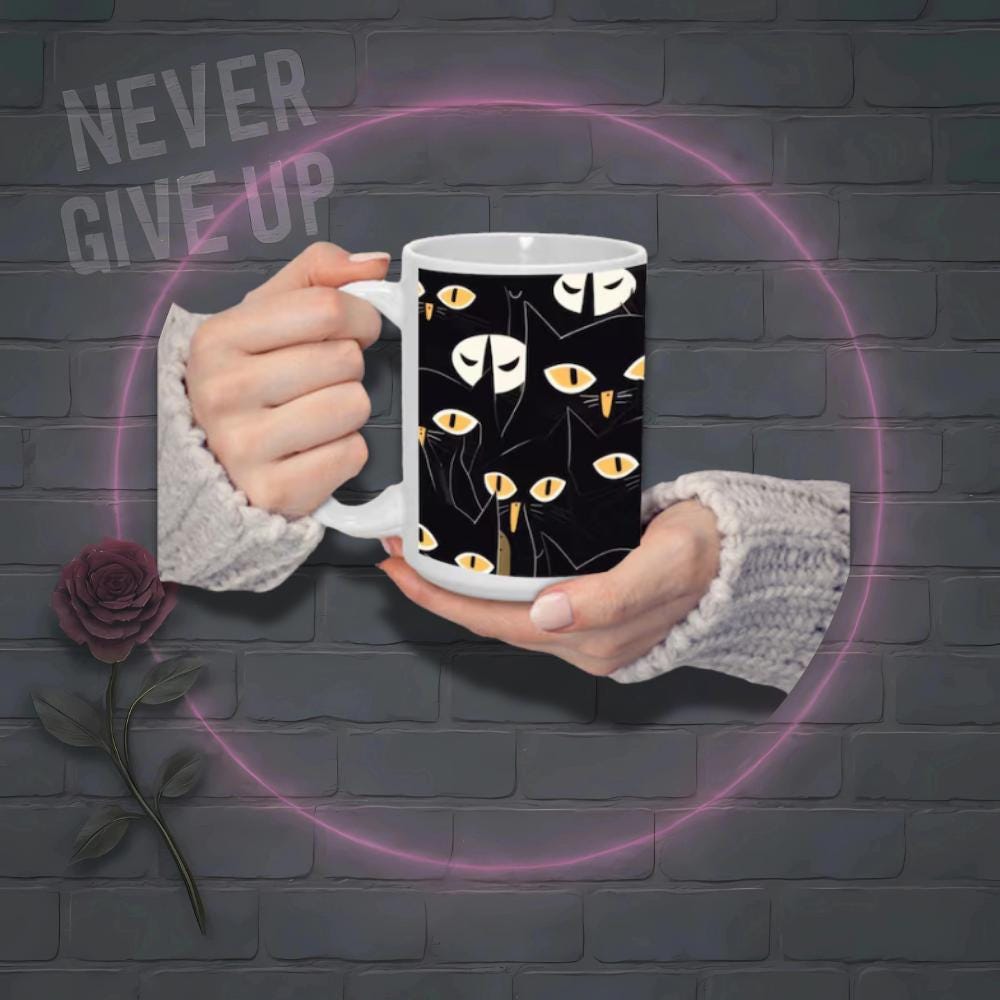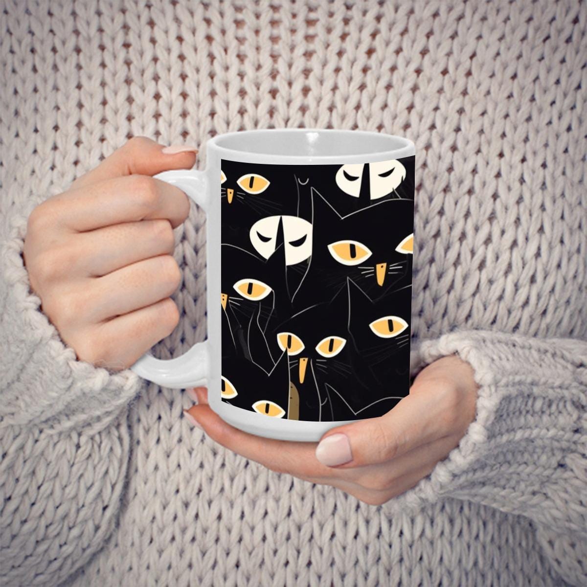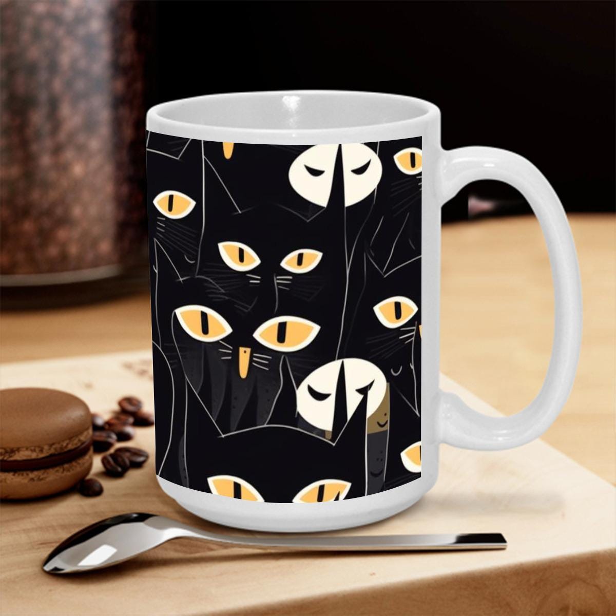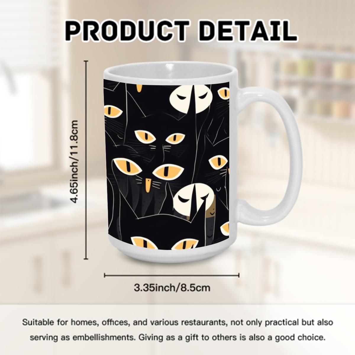 Black Cat Halloween Mug – Spooky Coffee Cup 15 oz – Fall Ceramic Gift