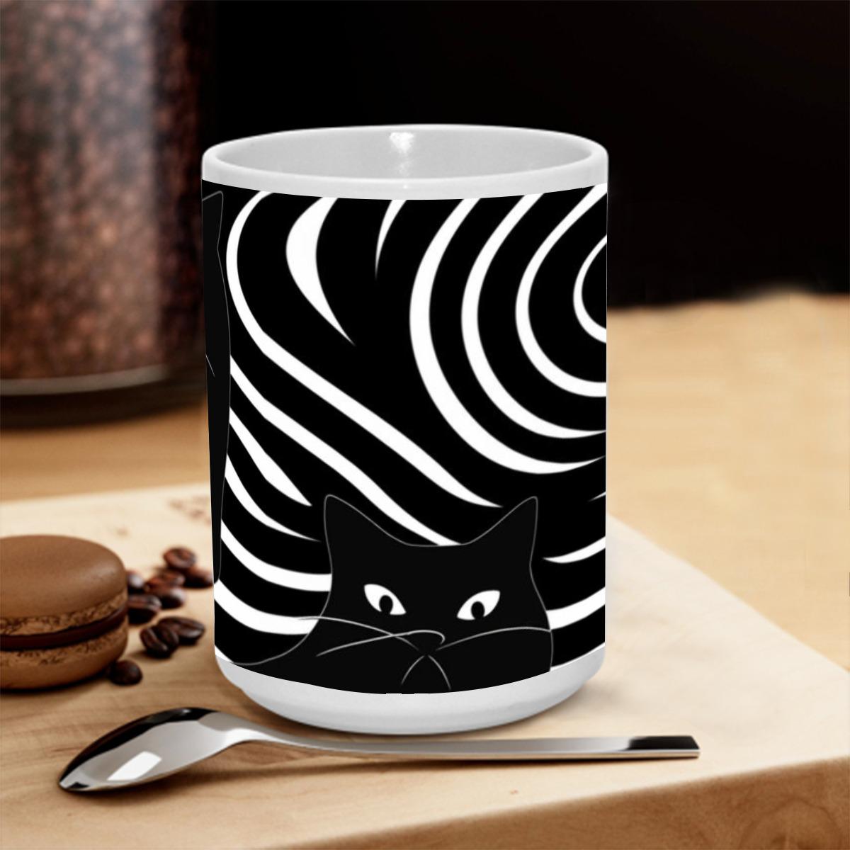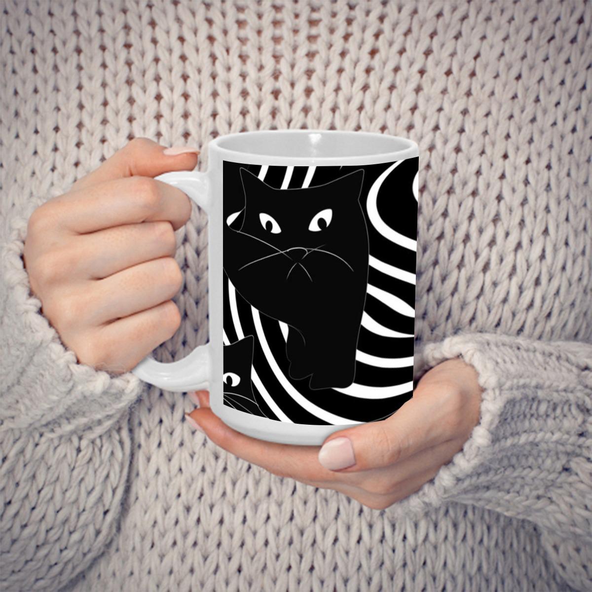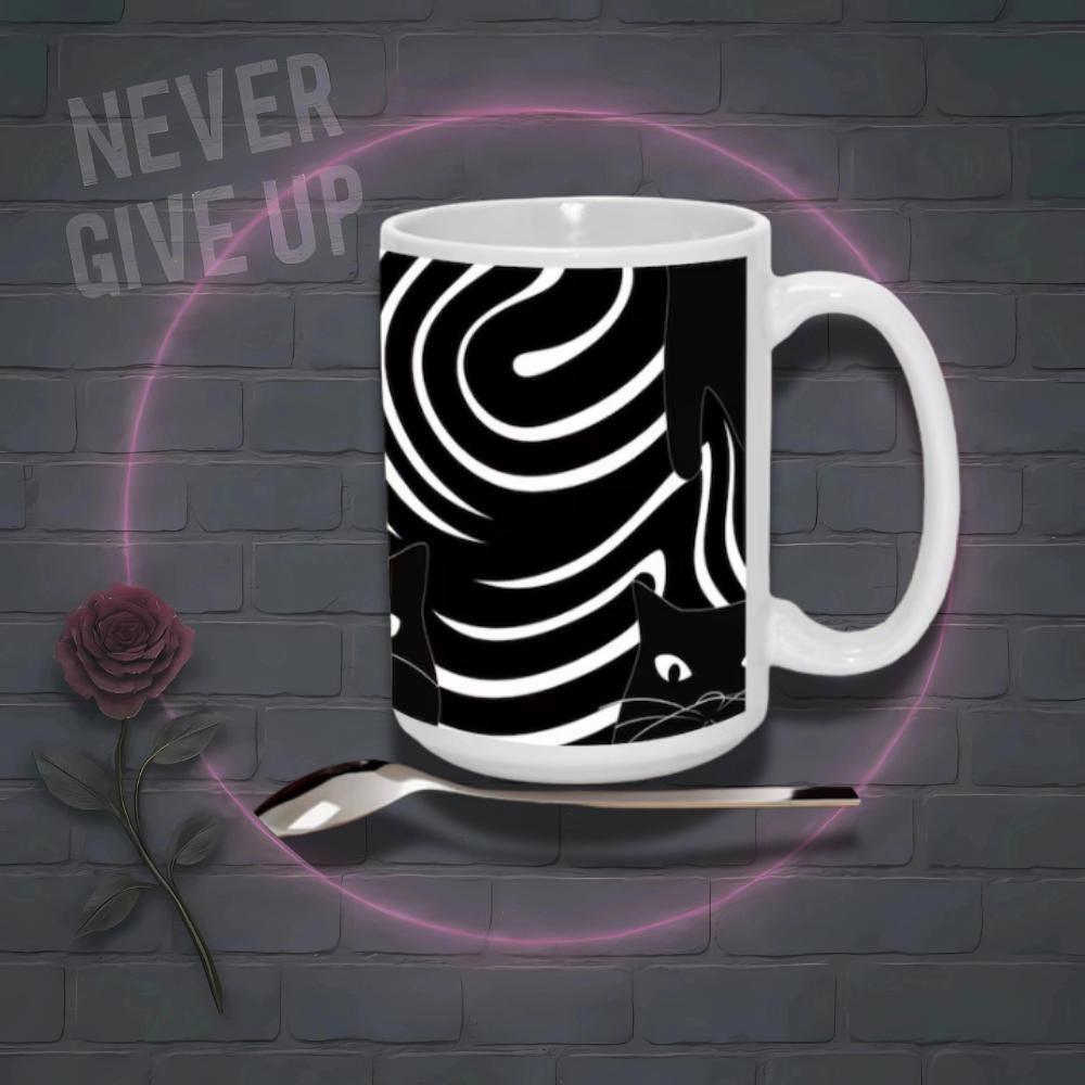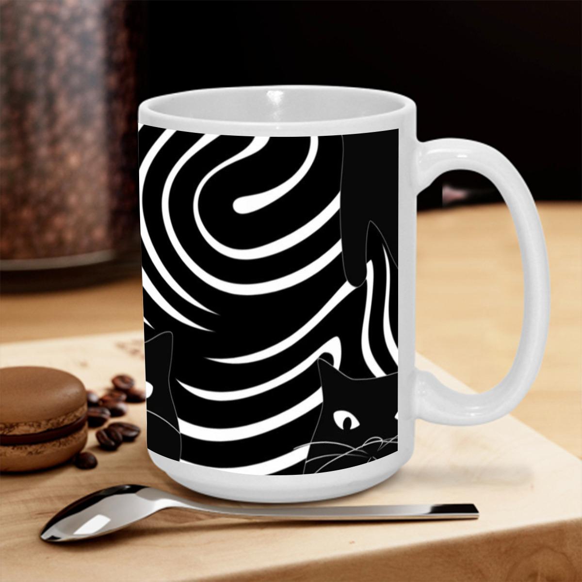 Black Cat Swirl Mug 15oz Funky Halloween Coffee Cup for Sassy Single Life Vibes